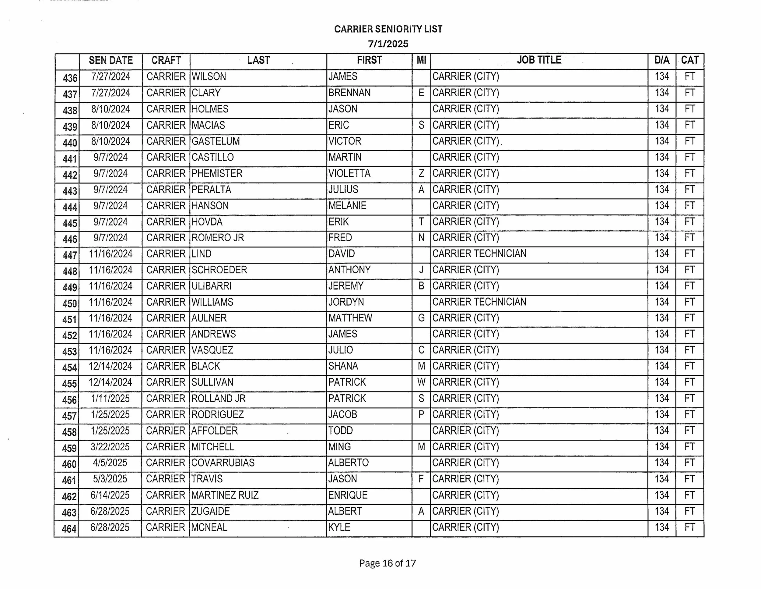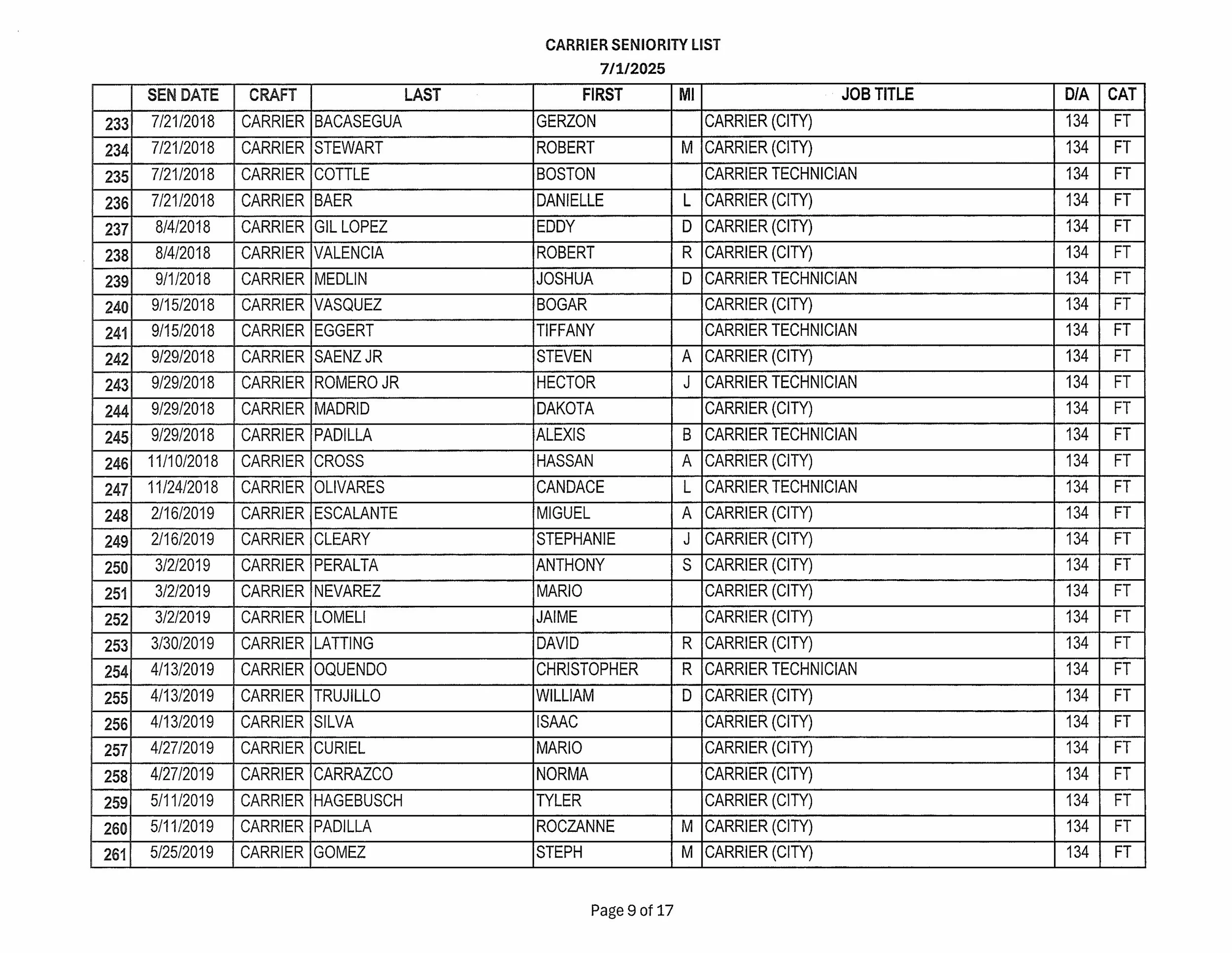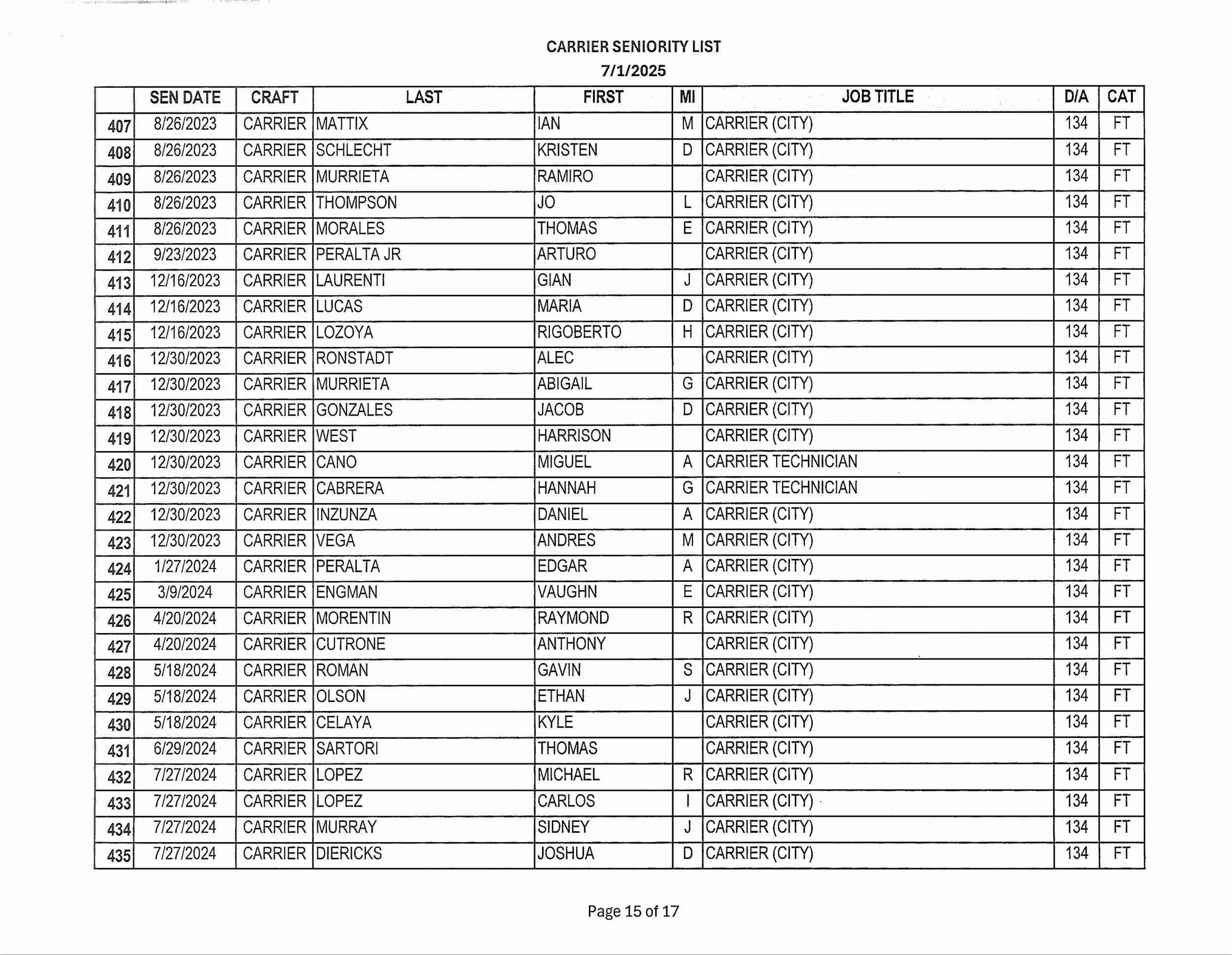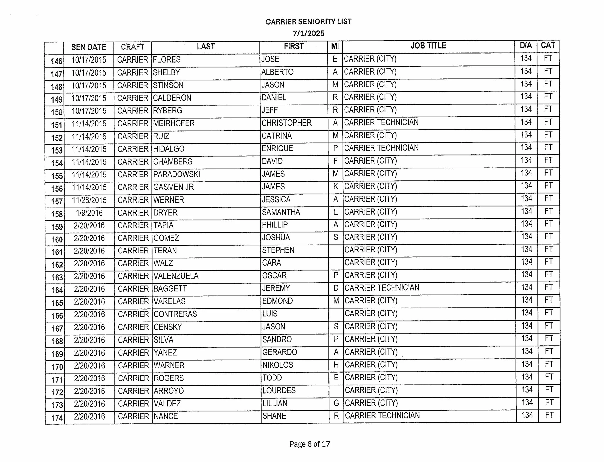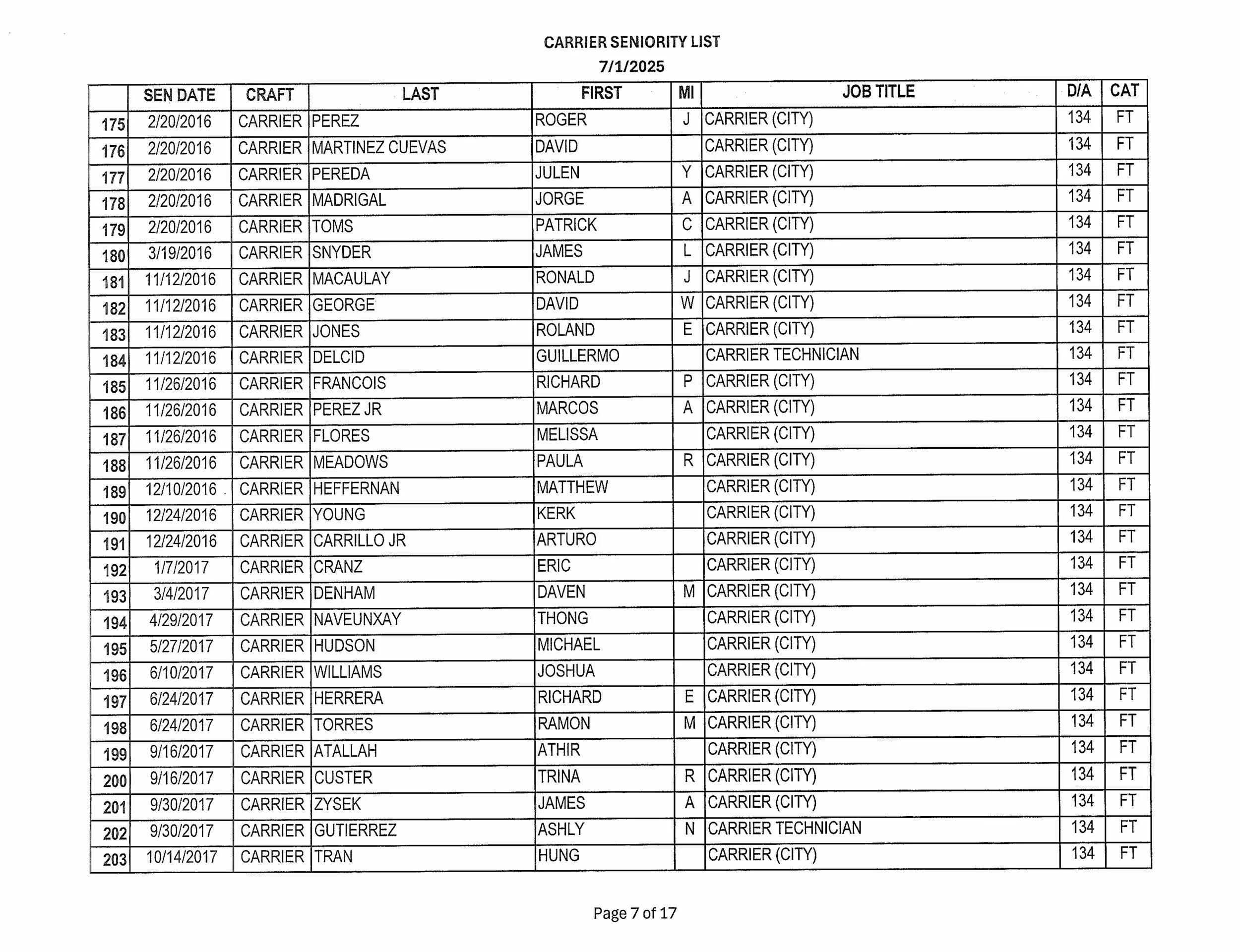 Seniority List