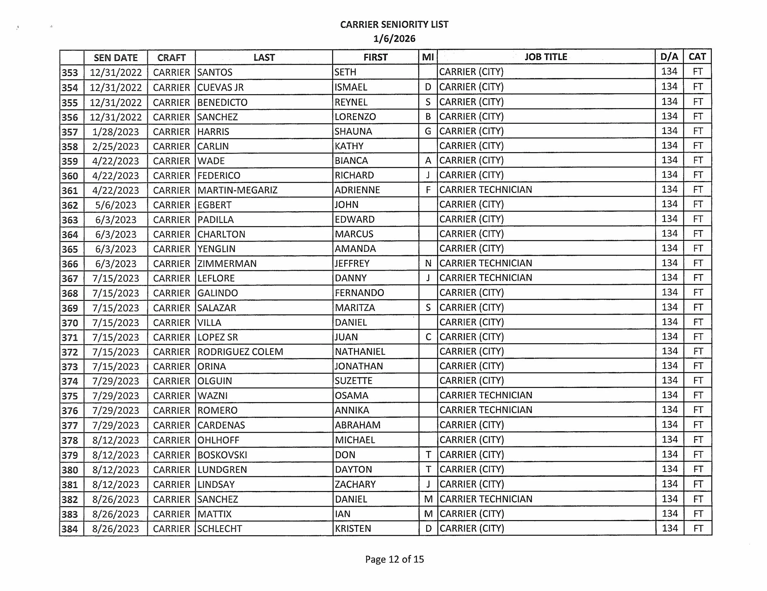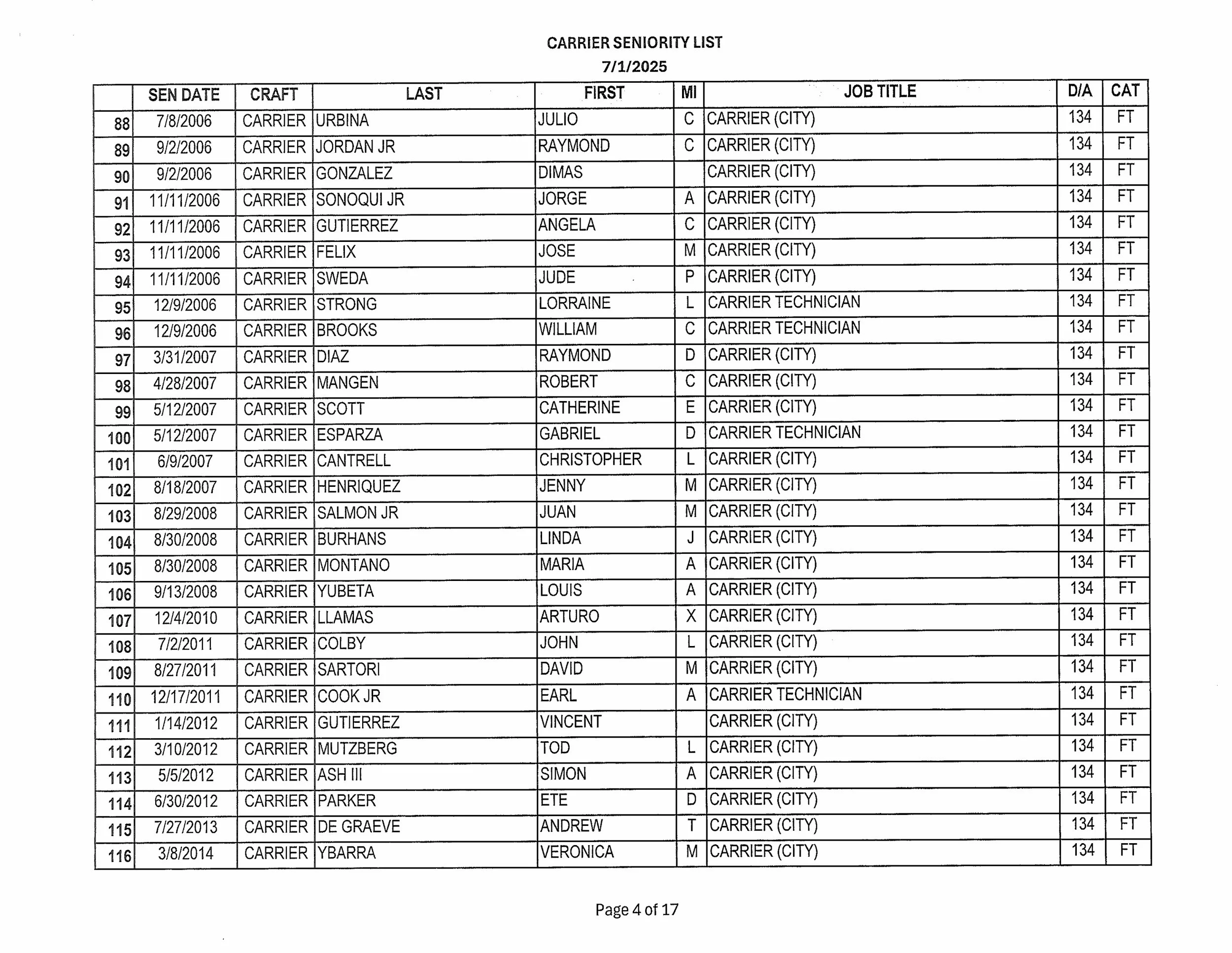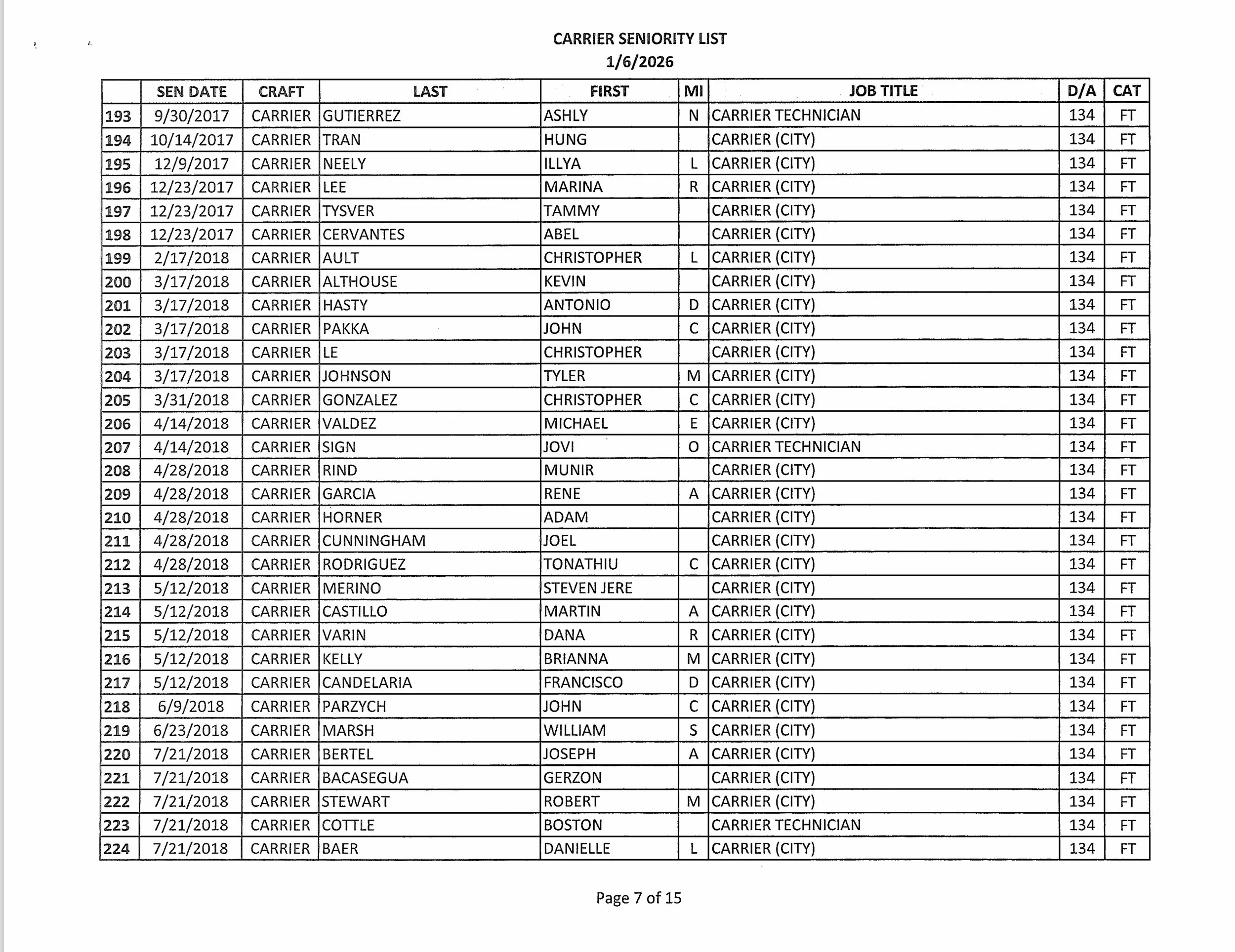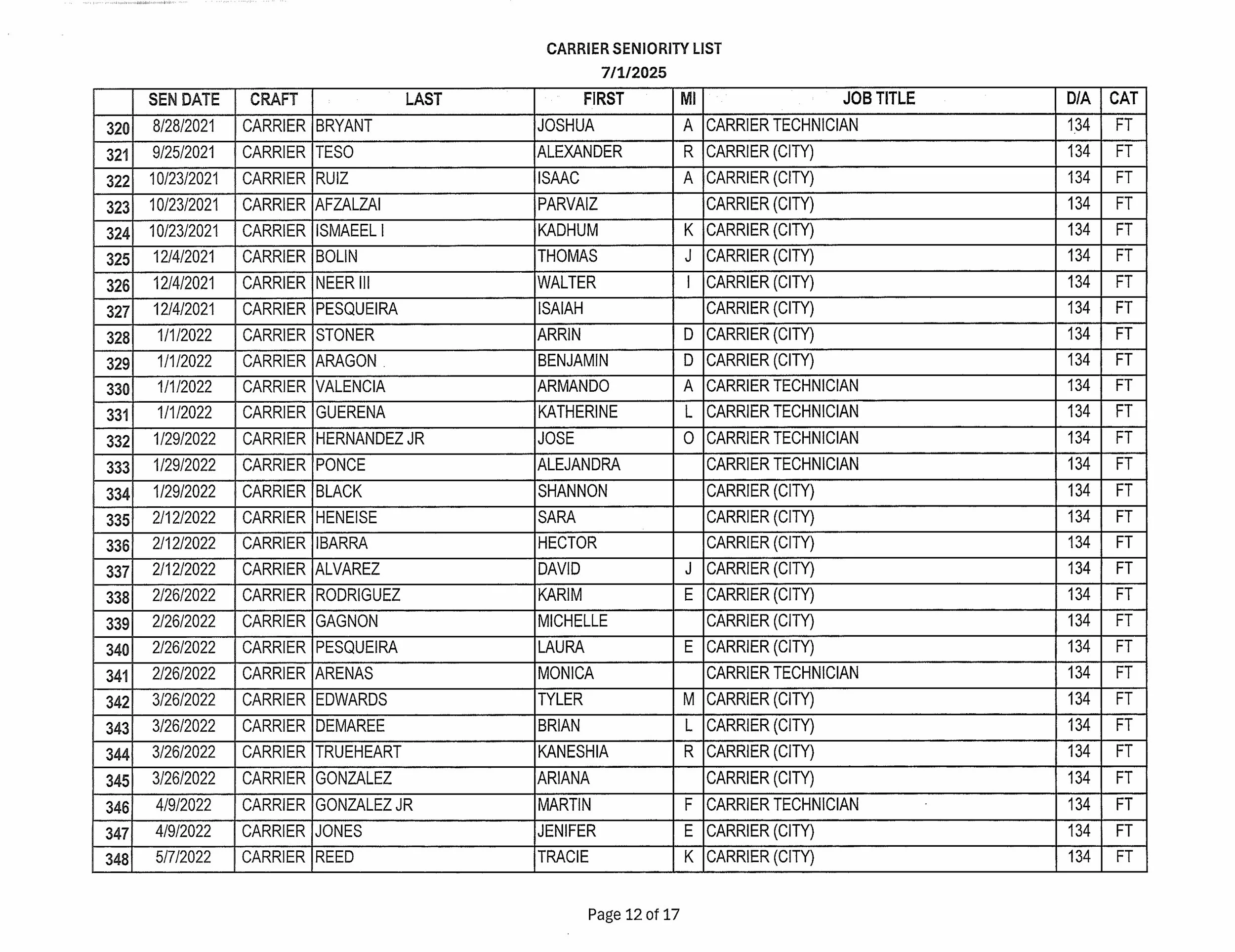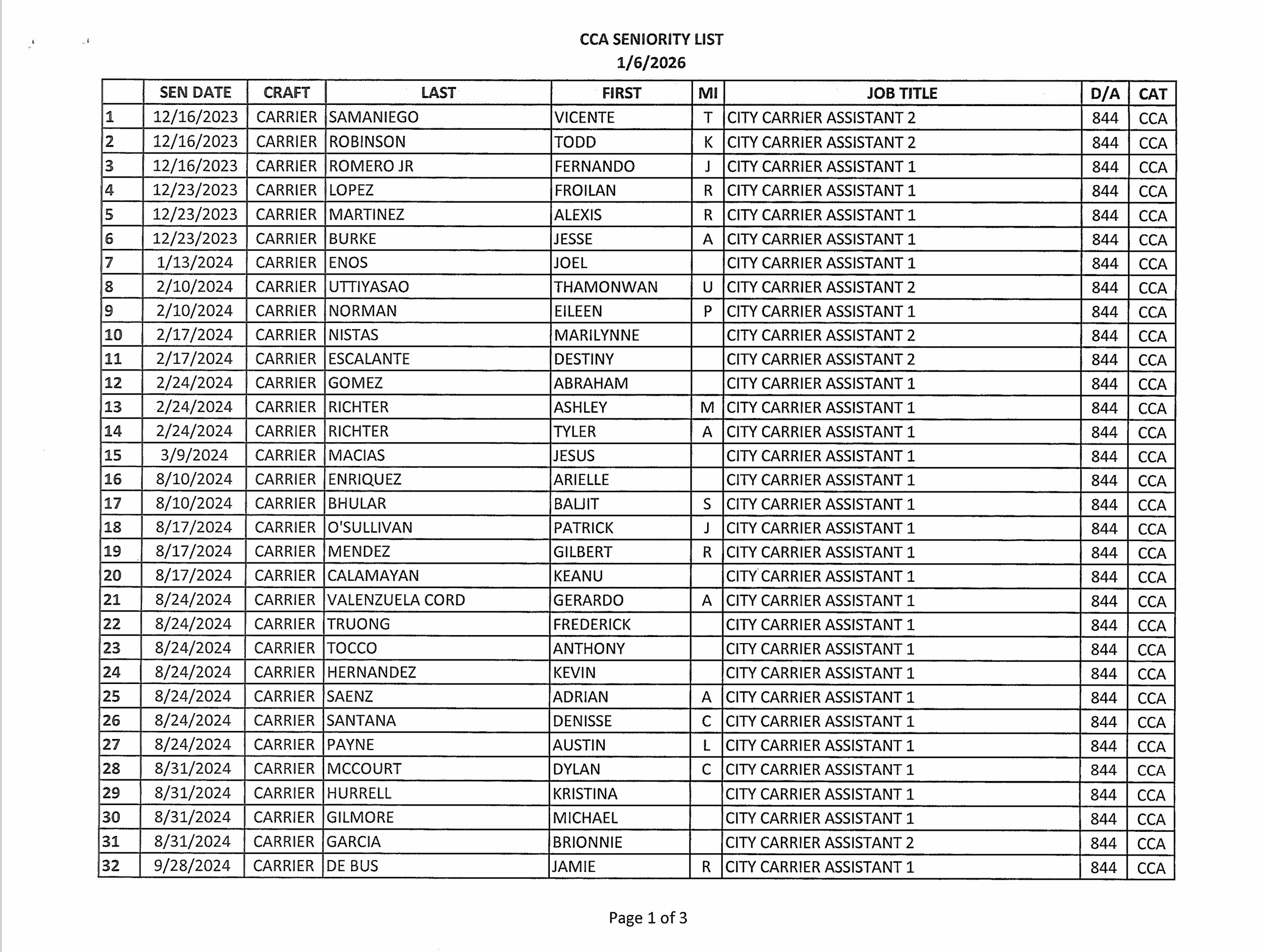 Seniority List
