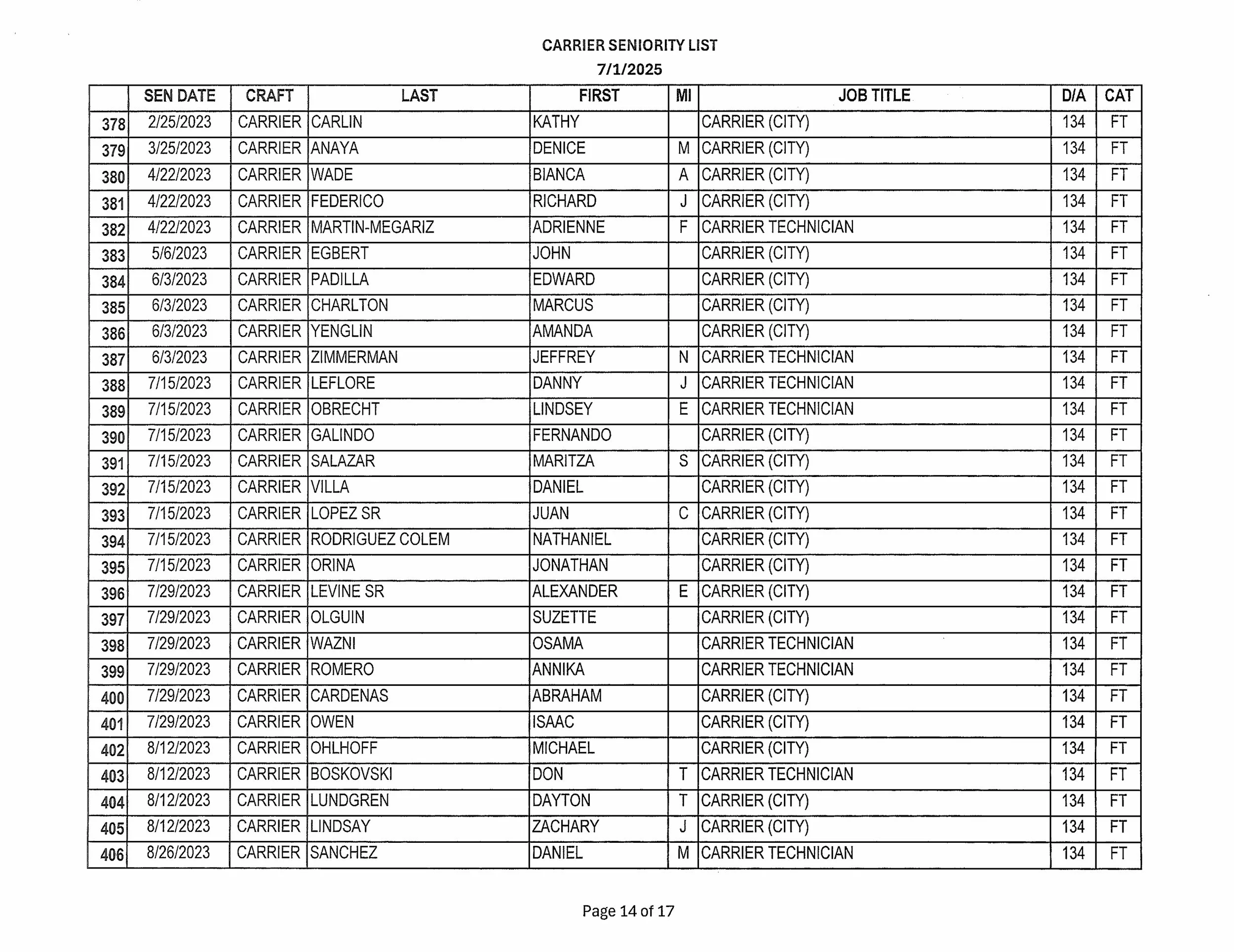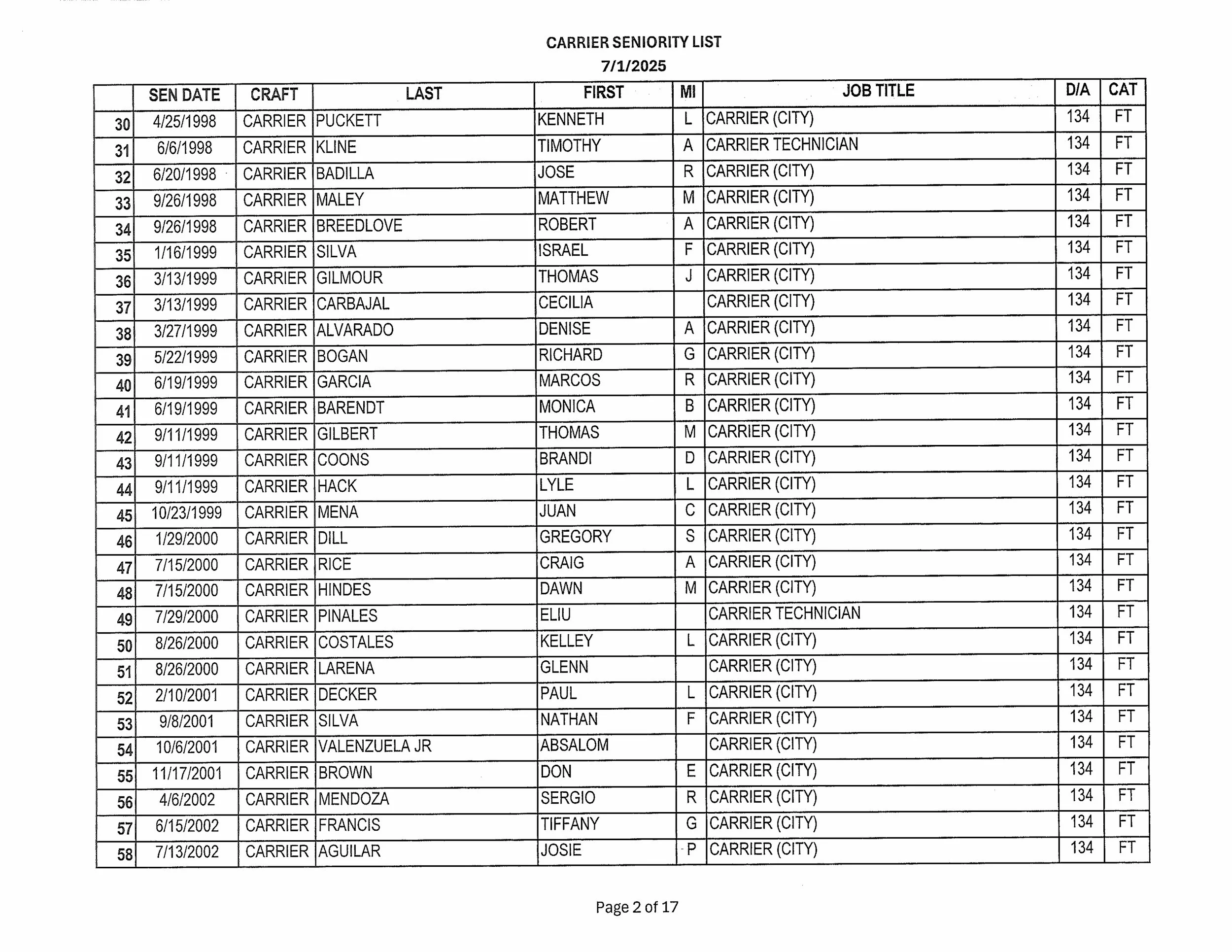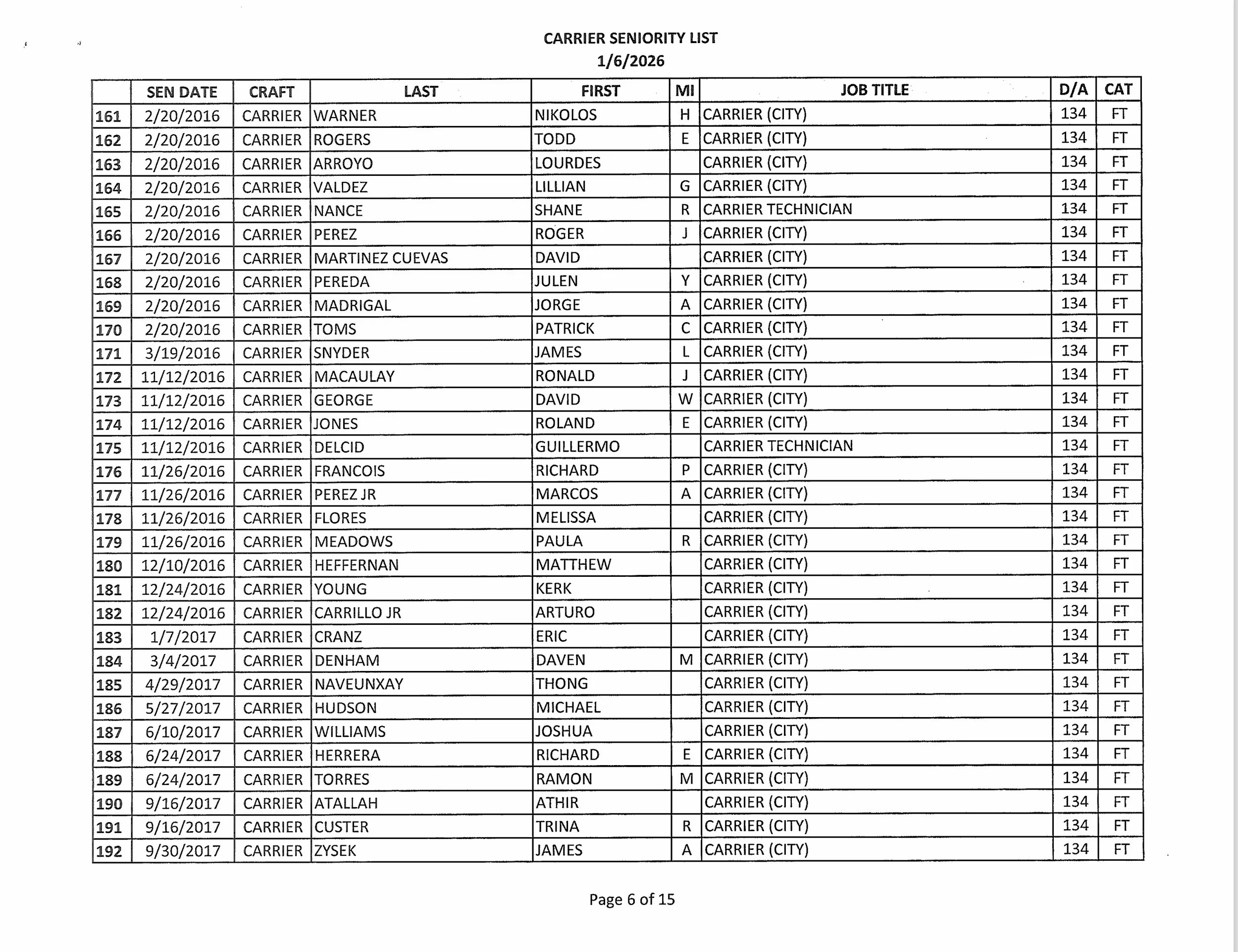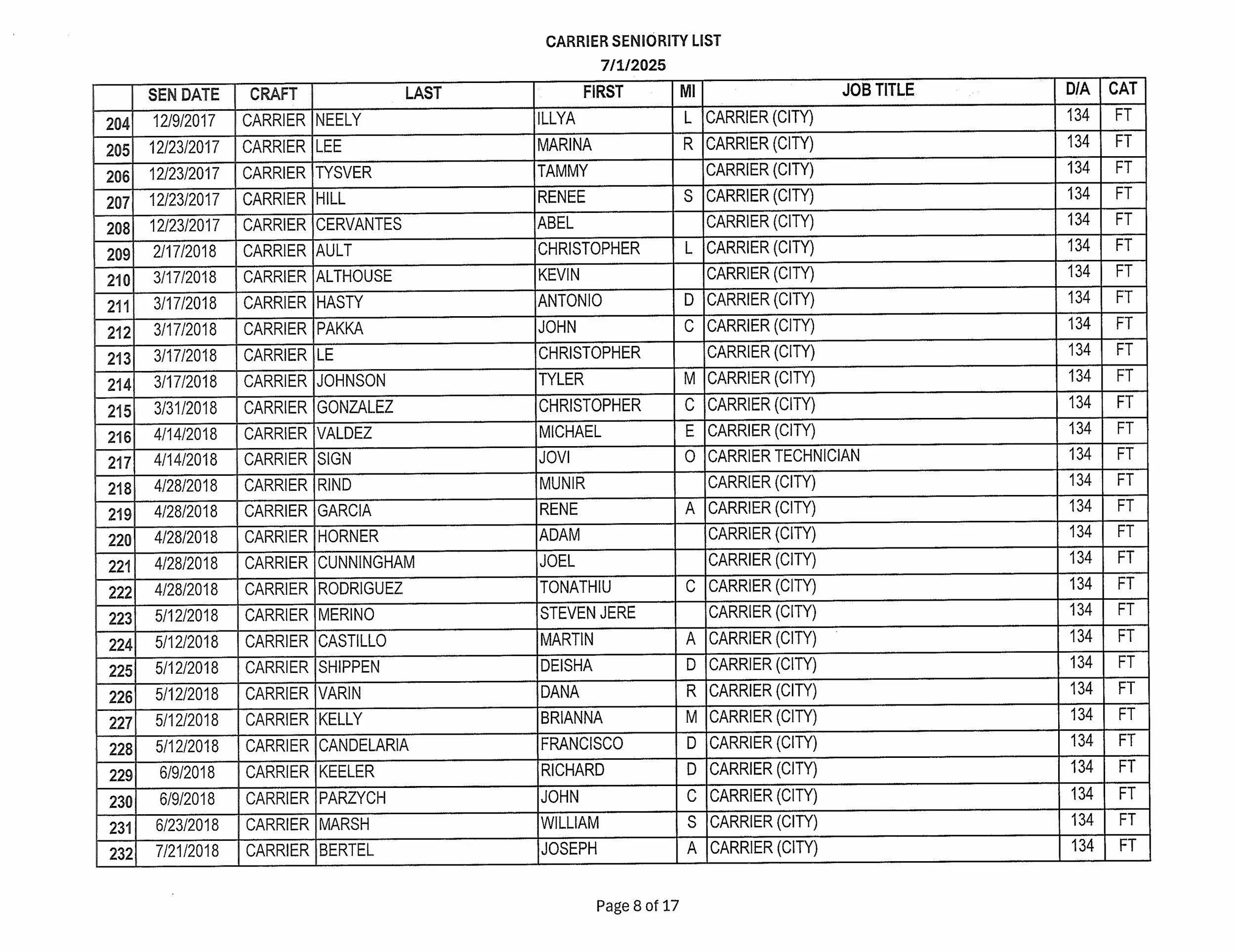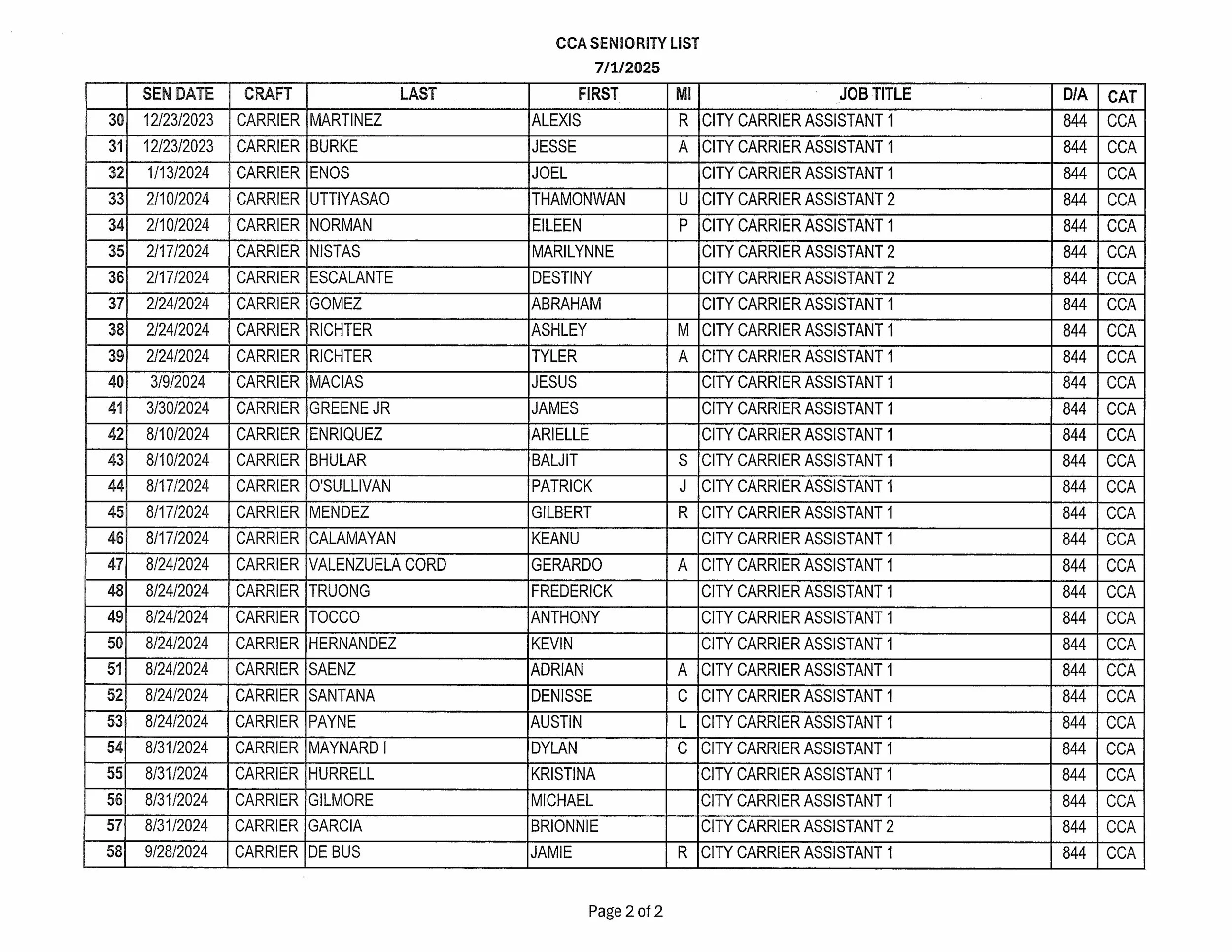 Seniority List