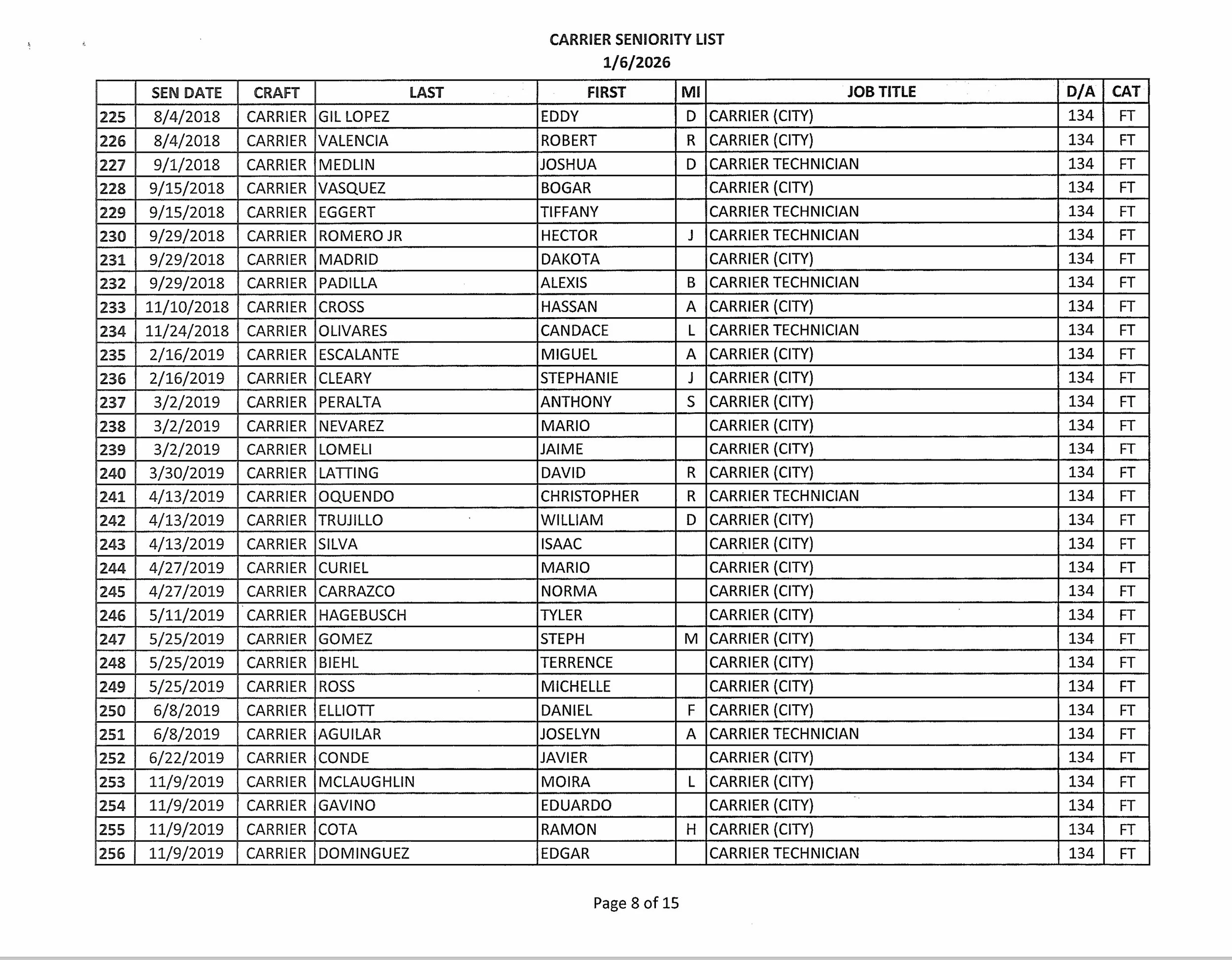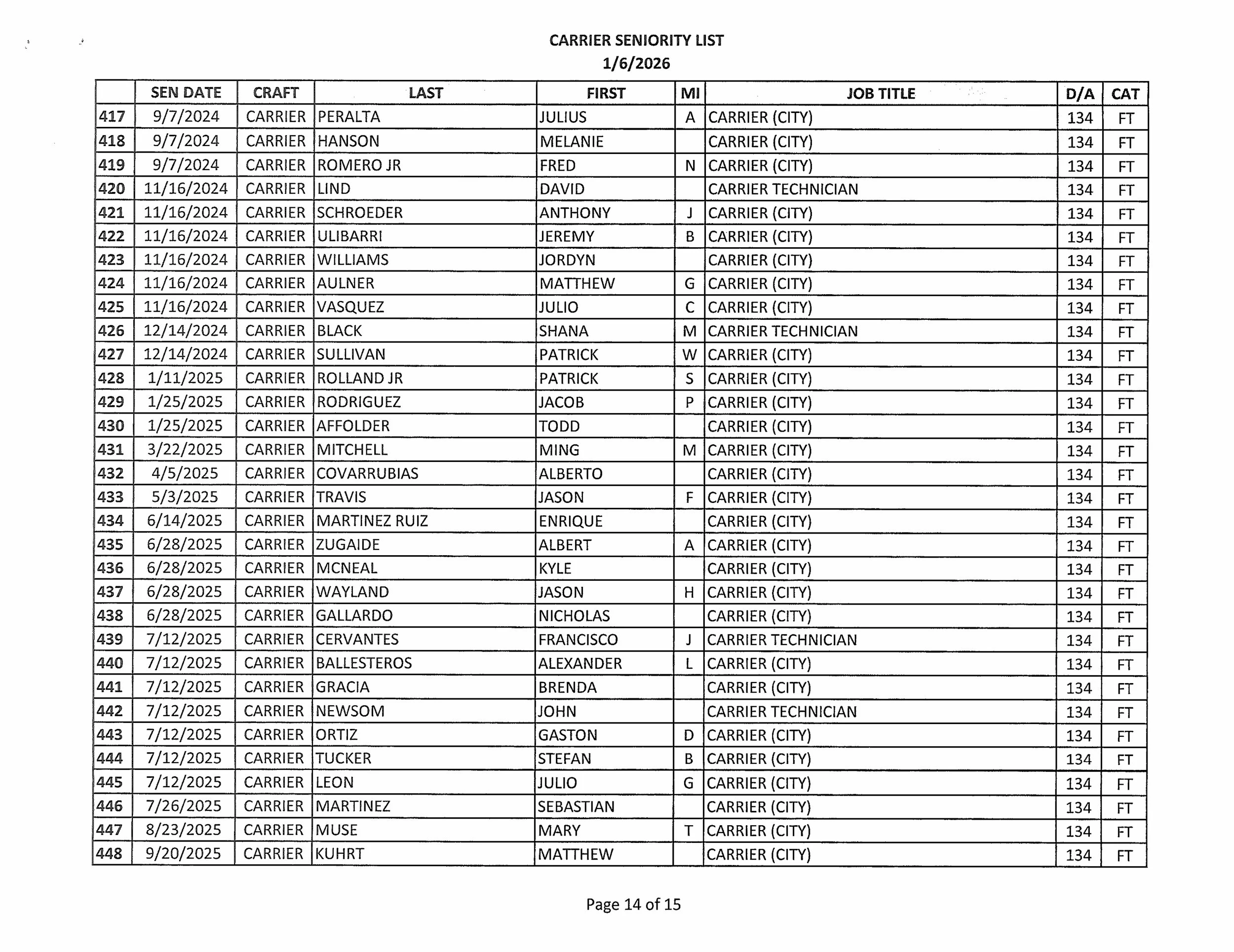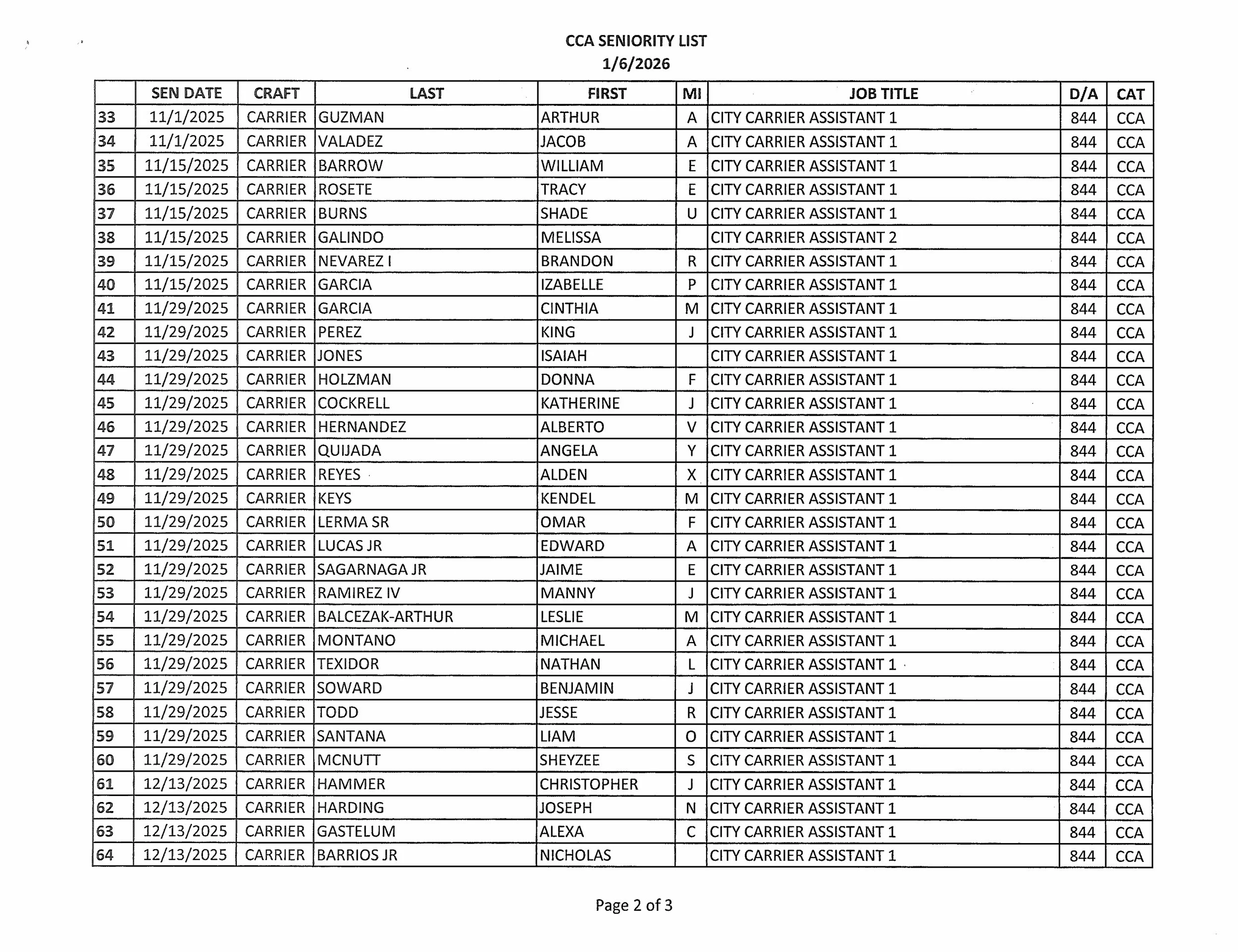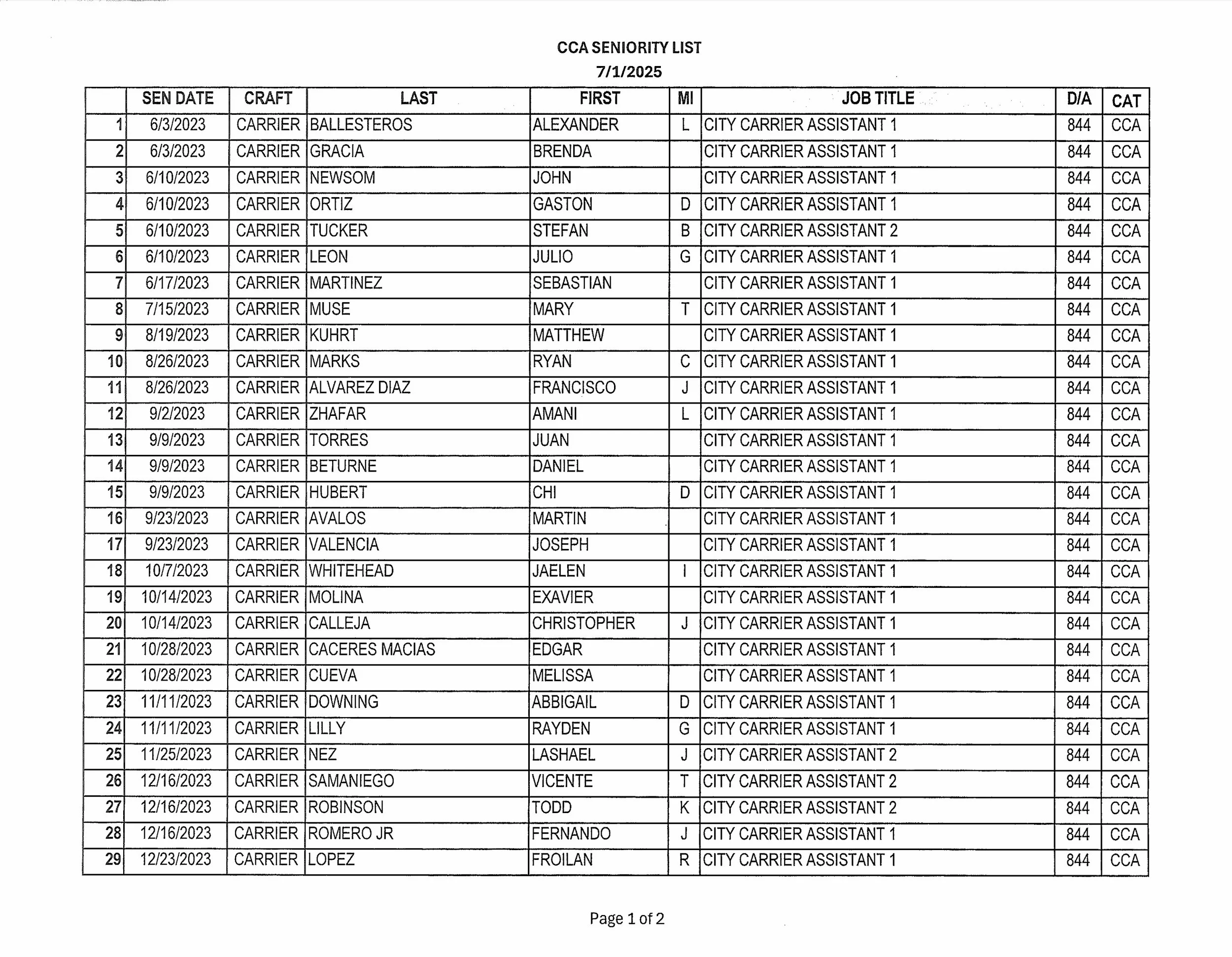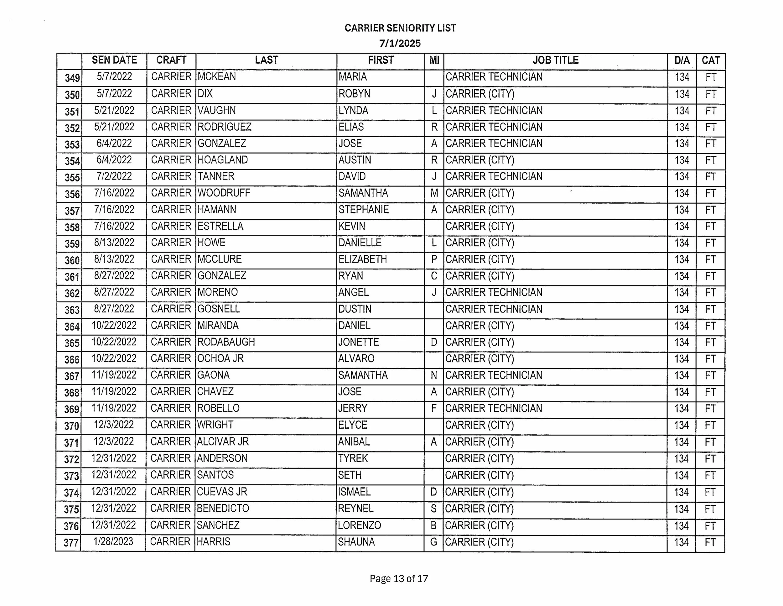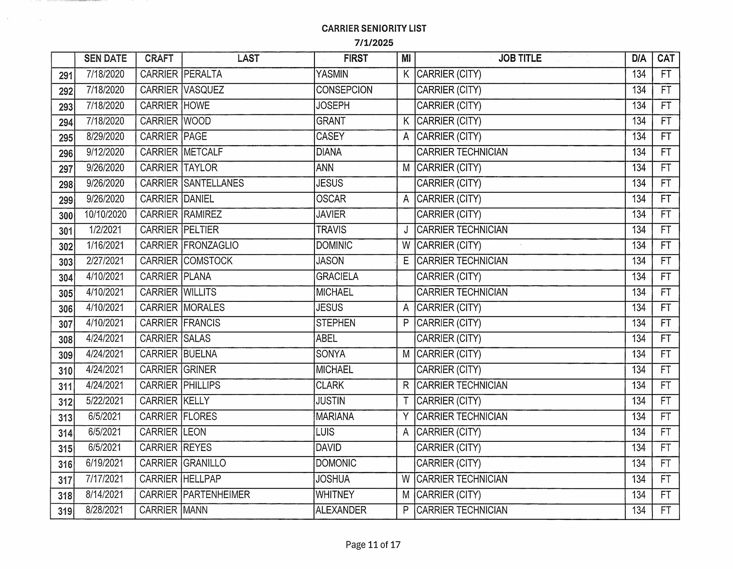 Seniority List