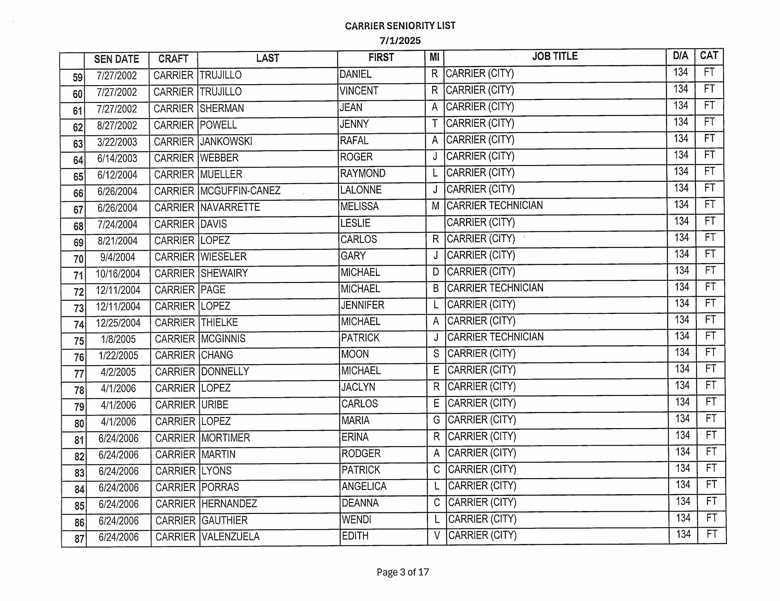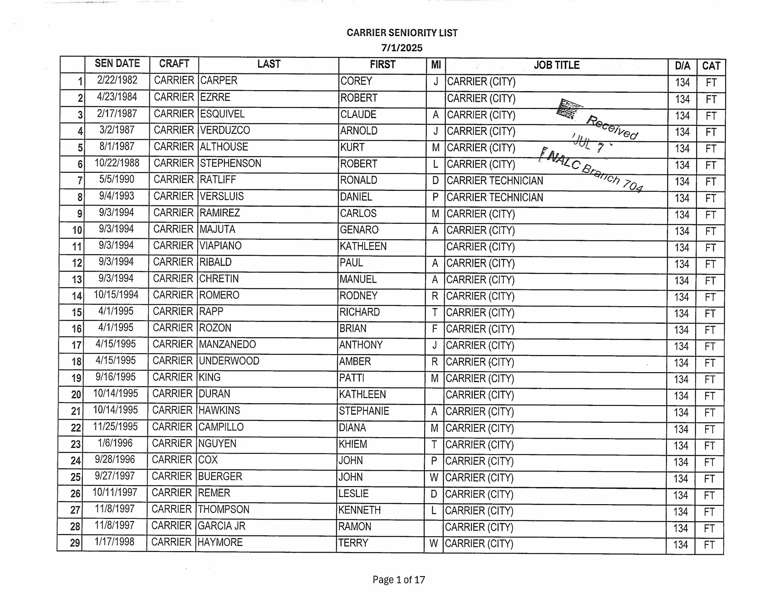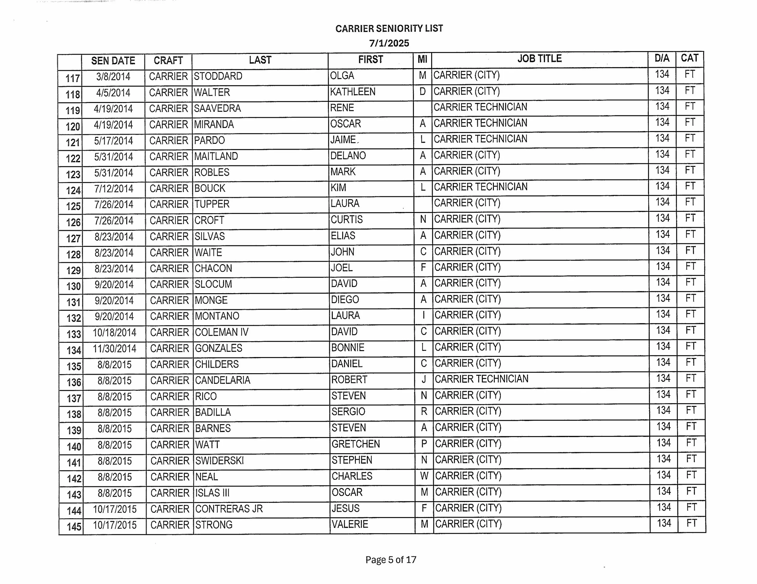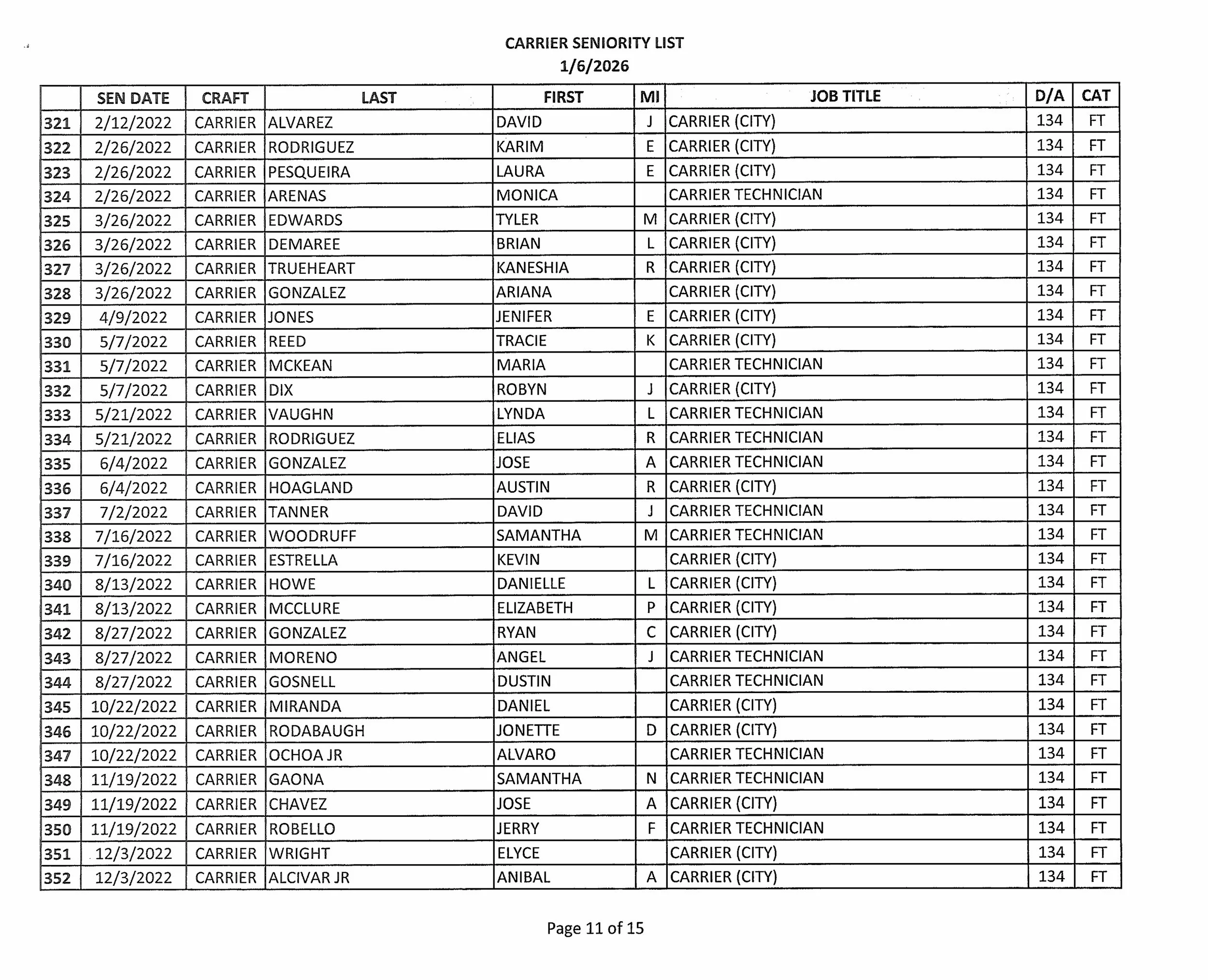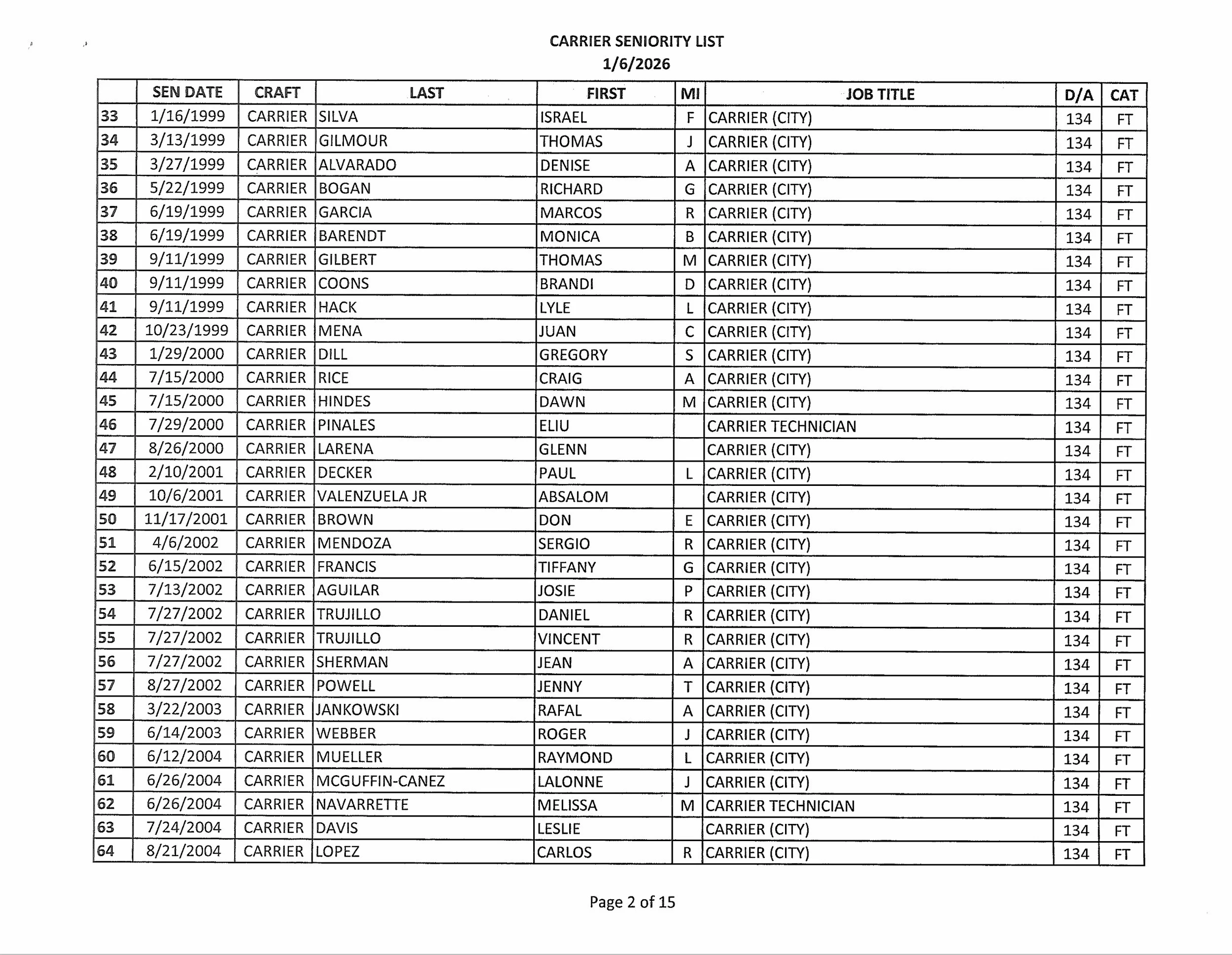 Seniority List