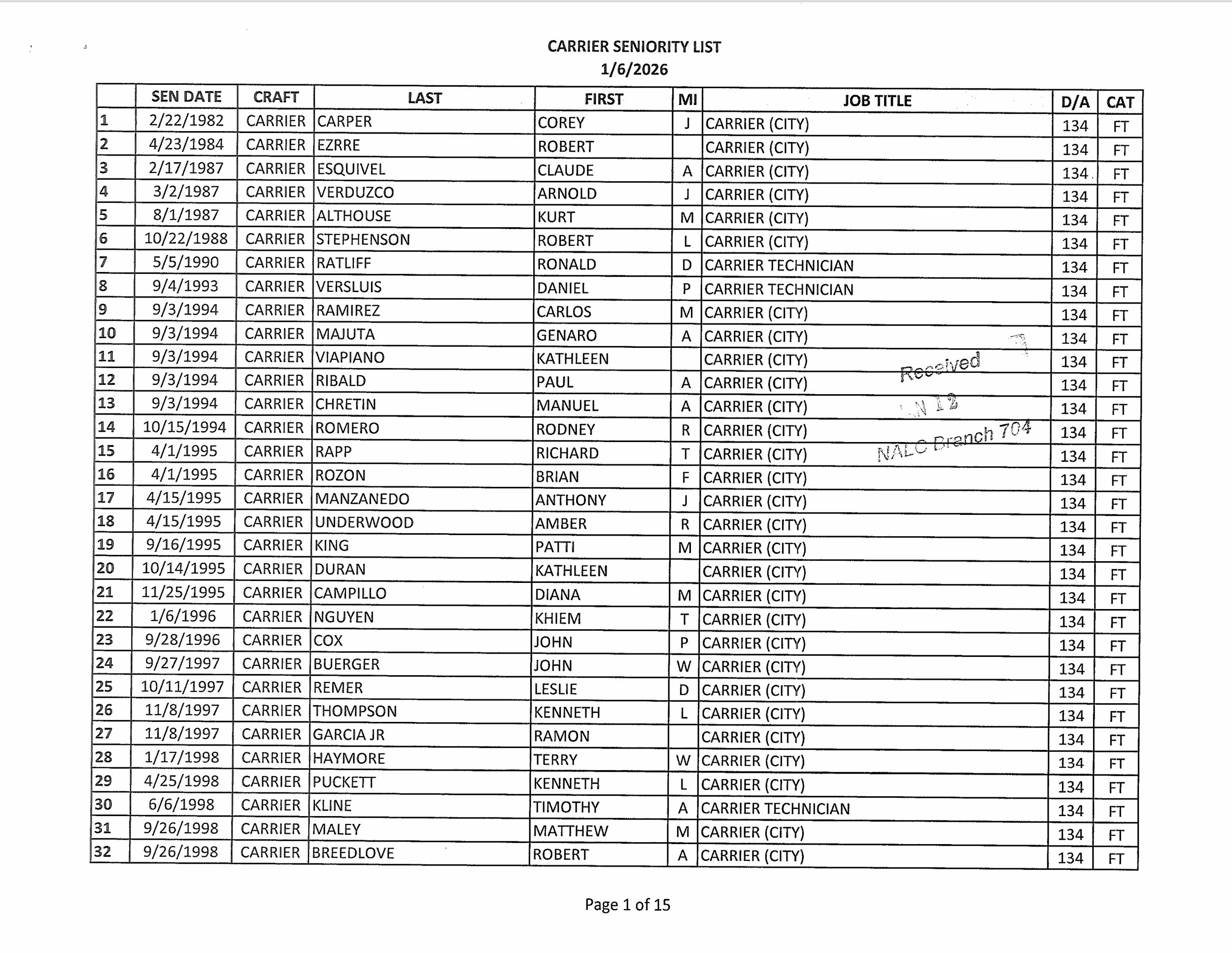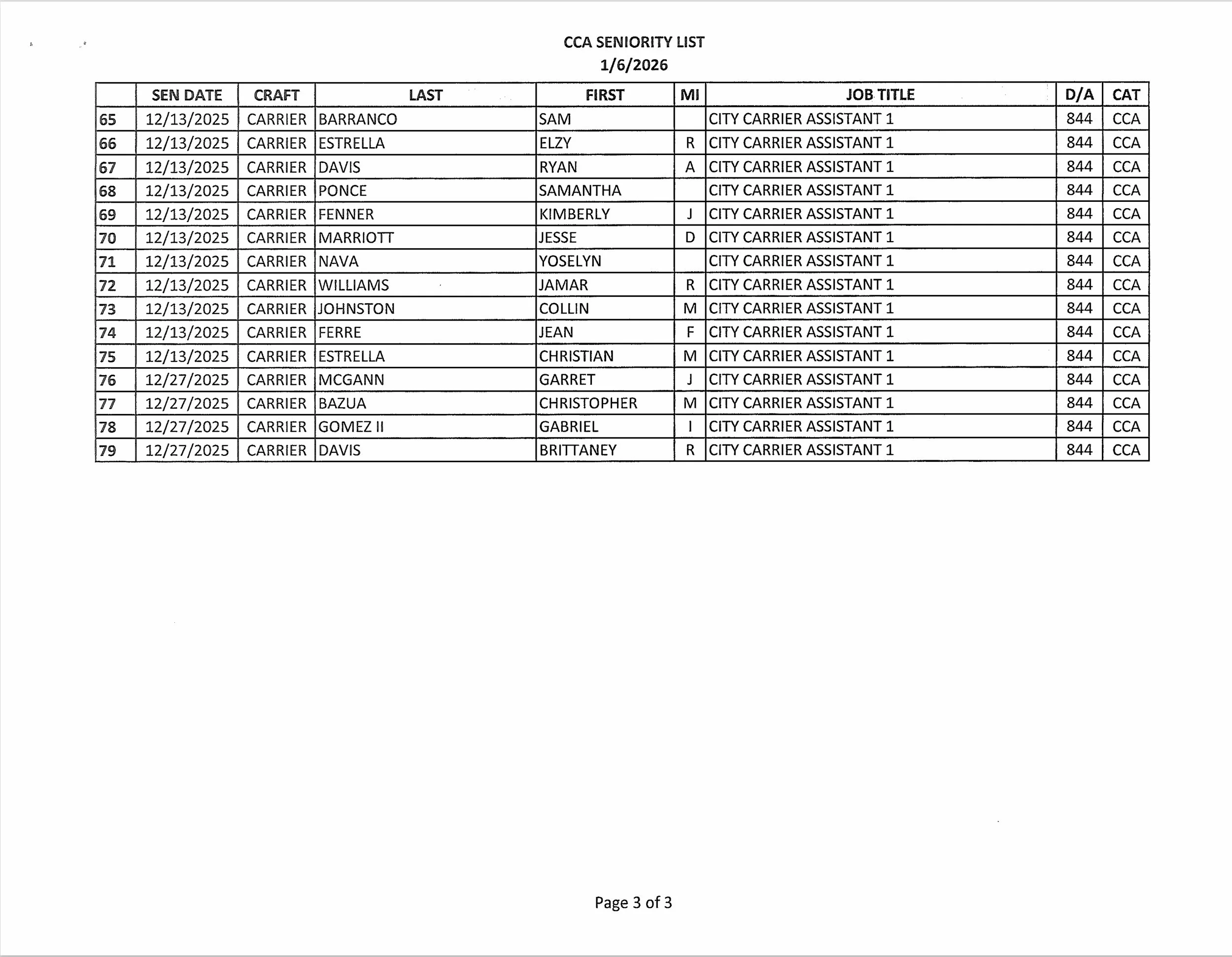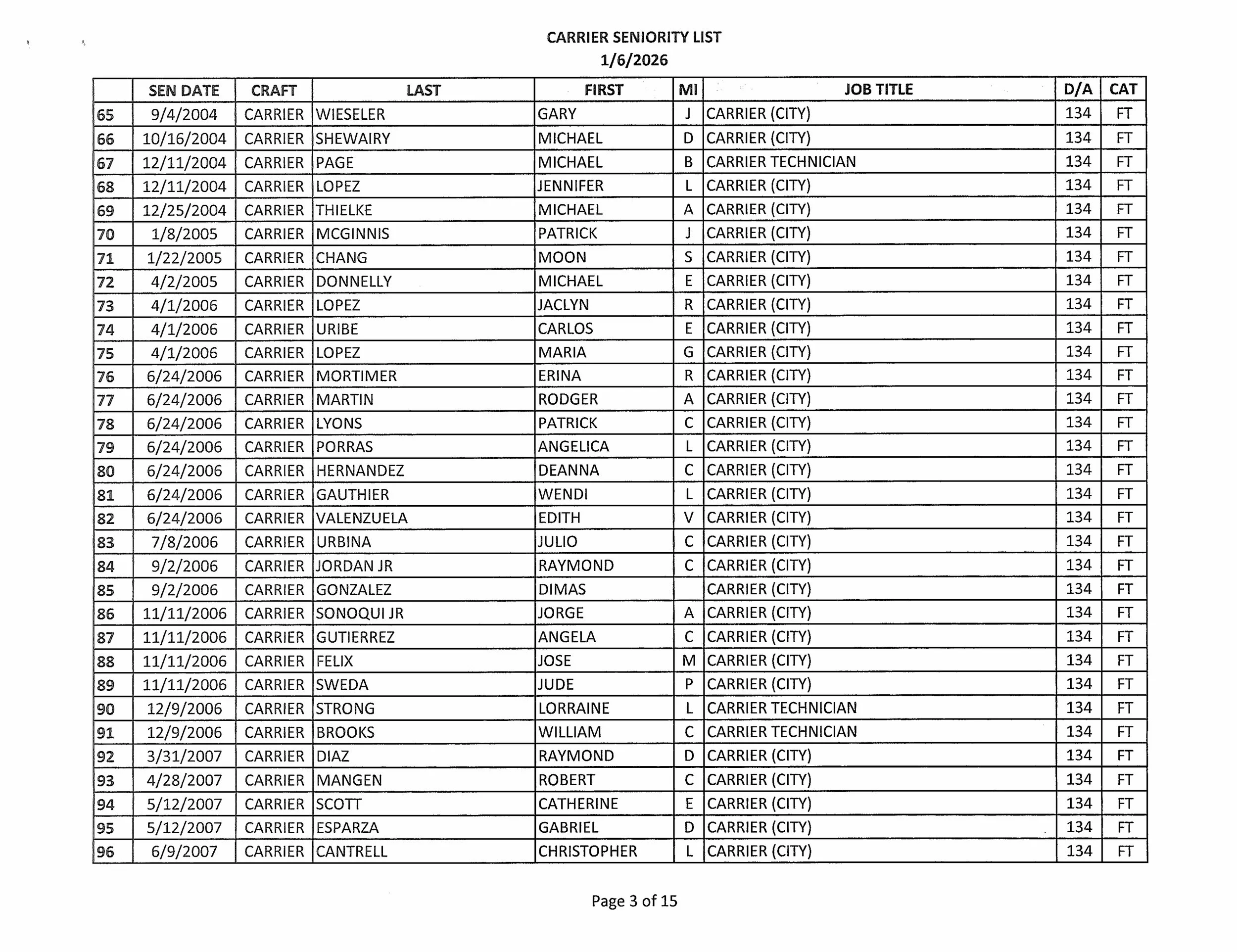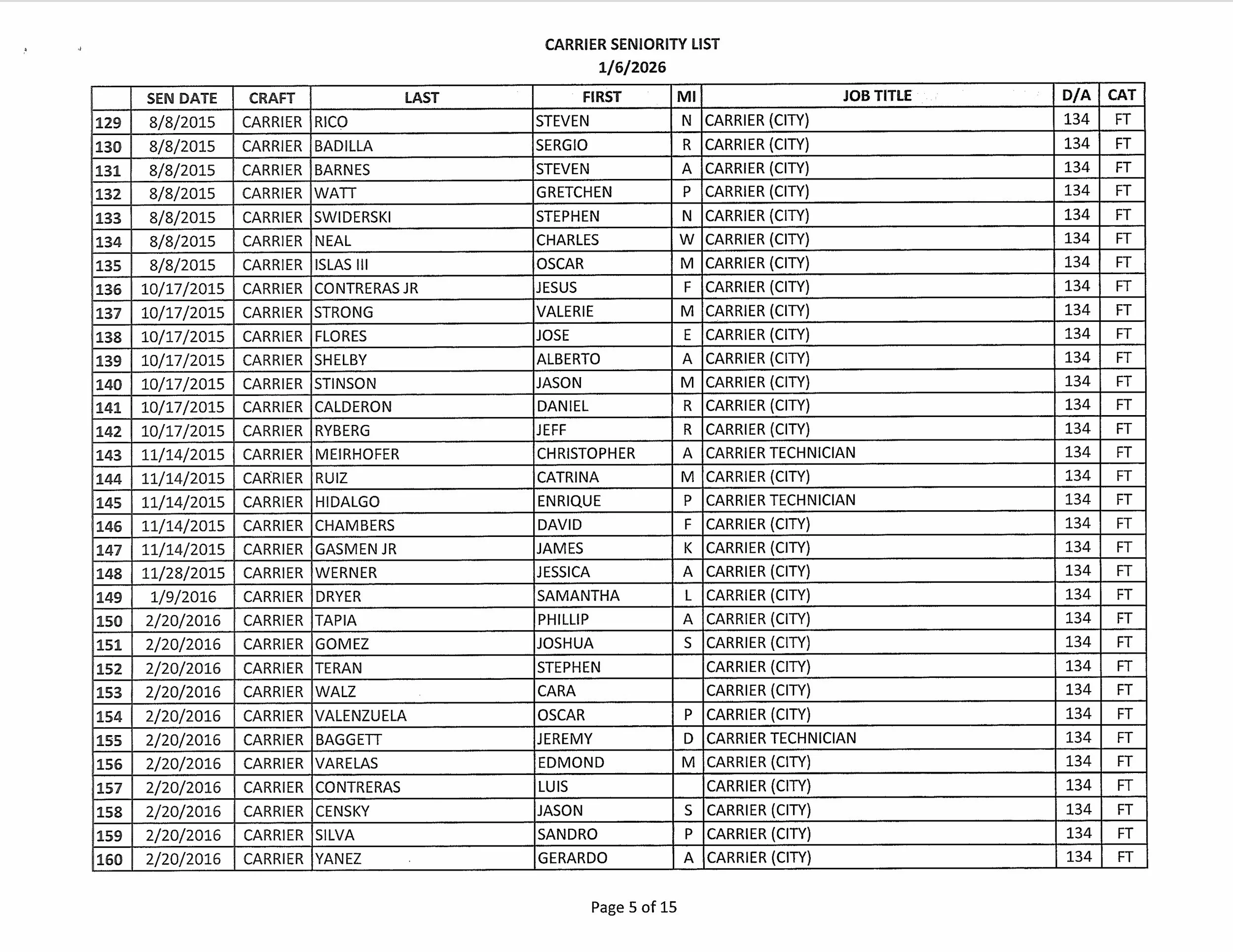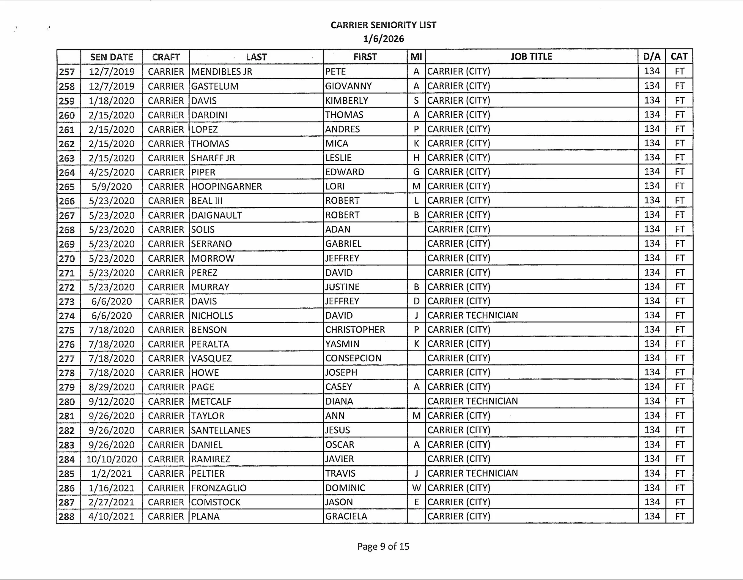 Seniority List